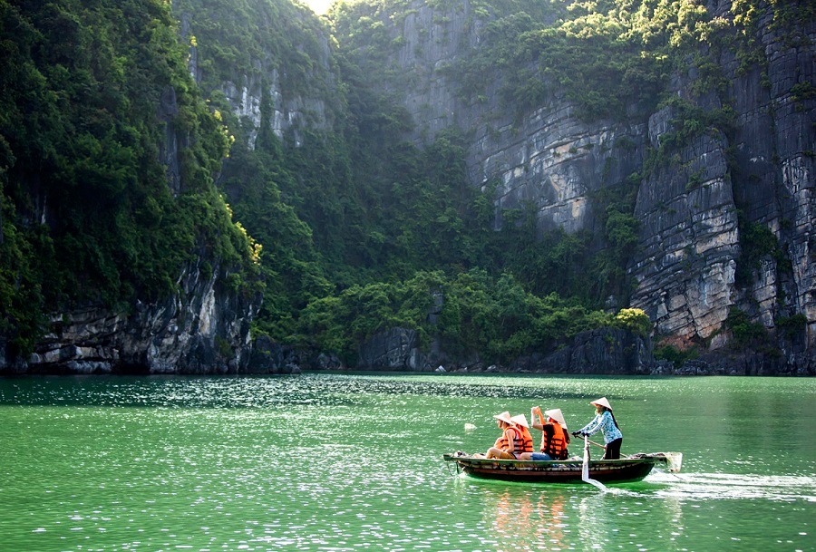 What highlights? None of cruises has taken tourists to Dark & Light Cave yet in the itinerary of Halong 2 days, 1 night as it geographically takes much more effort to there. Since 2014 November, Gray Line, a pioneer has started adding this destination into the 2-day 1-night tour program in order to enrich tourist’s experience with kayaking activity.
