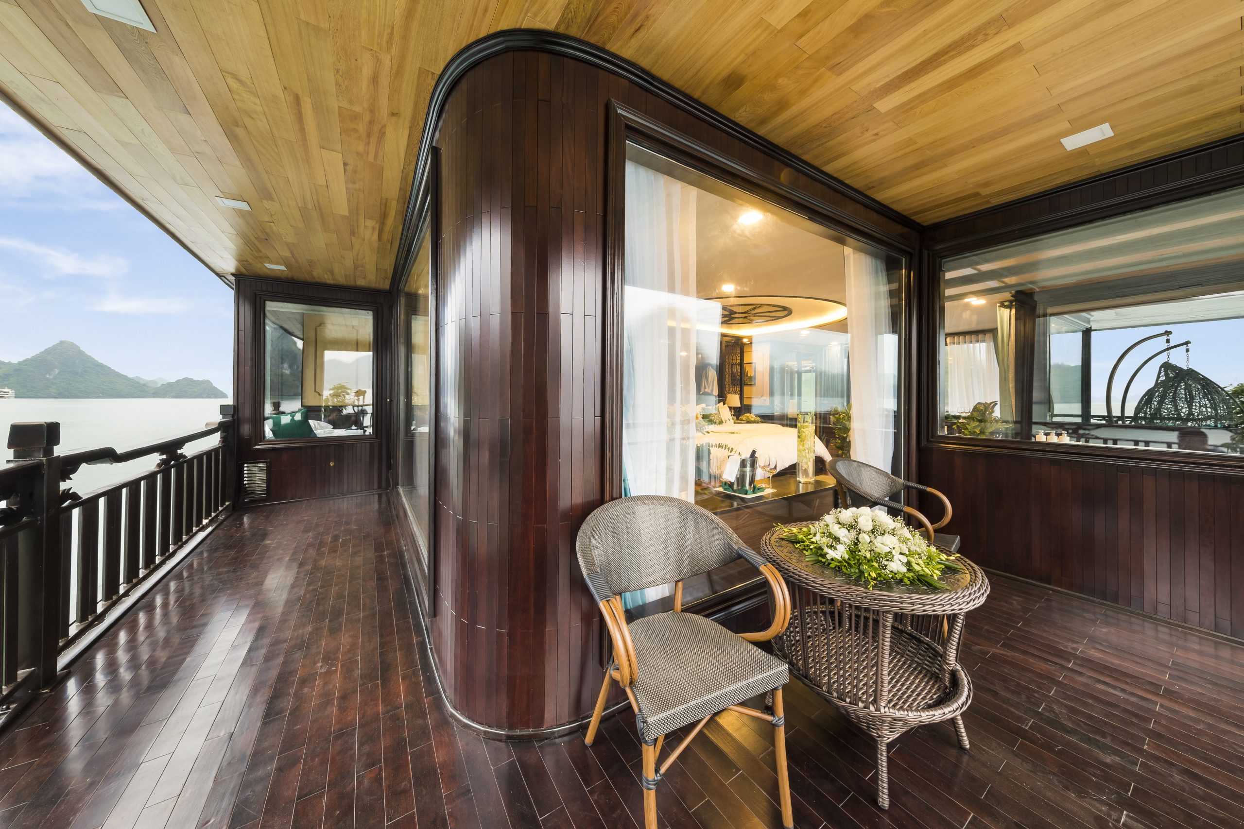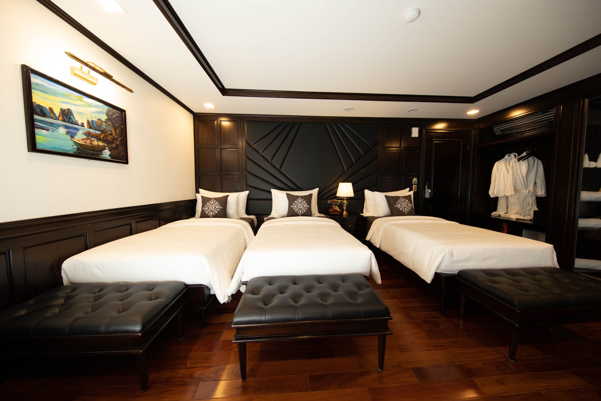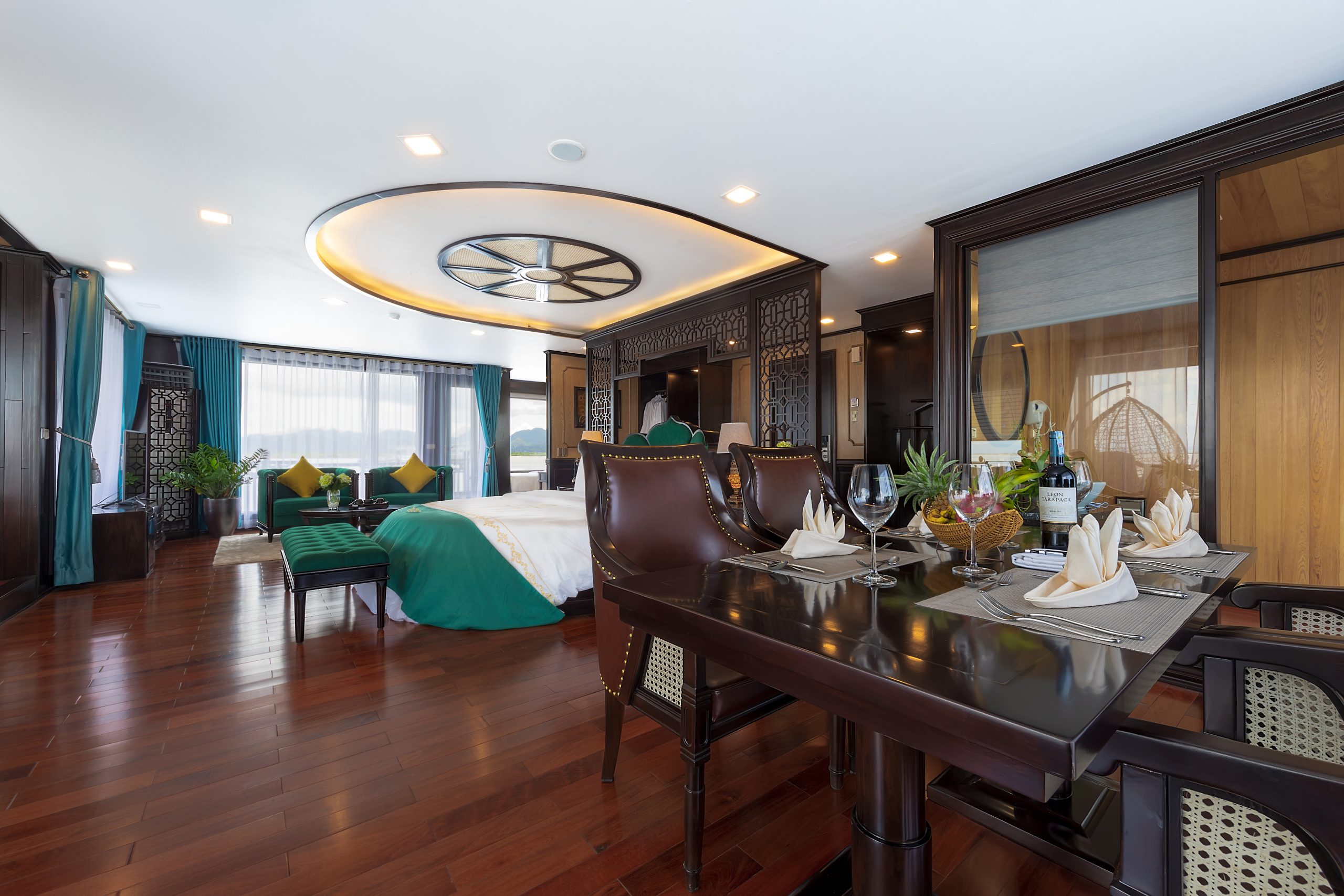 Experience refined elegance aboard La Regina Legend Cruise, where every cabin is thoughtfully designed to embody the essence of “elegant luxury.” Blending Indochine-inspired décor with modern comfort, each suite offers a serene retreat amid the breathtaking beauty of the bay.