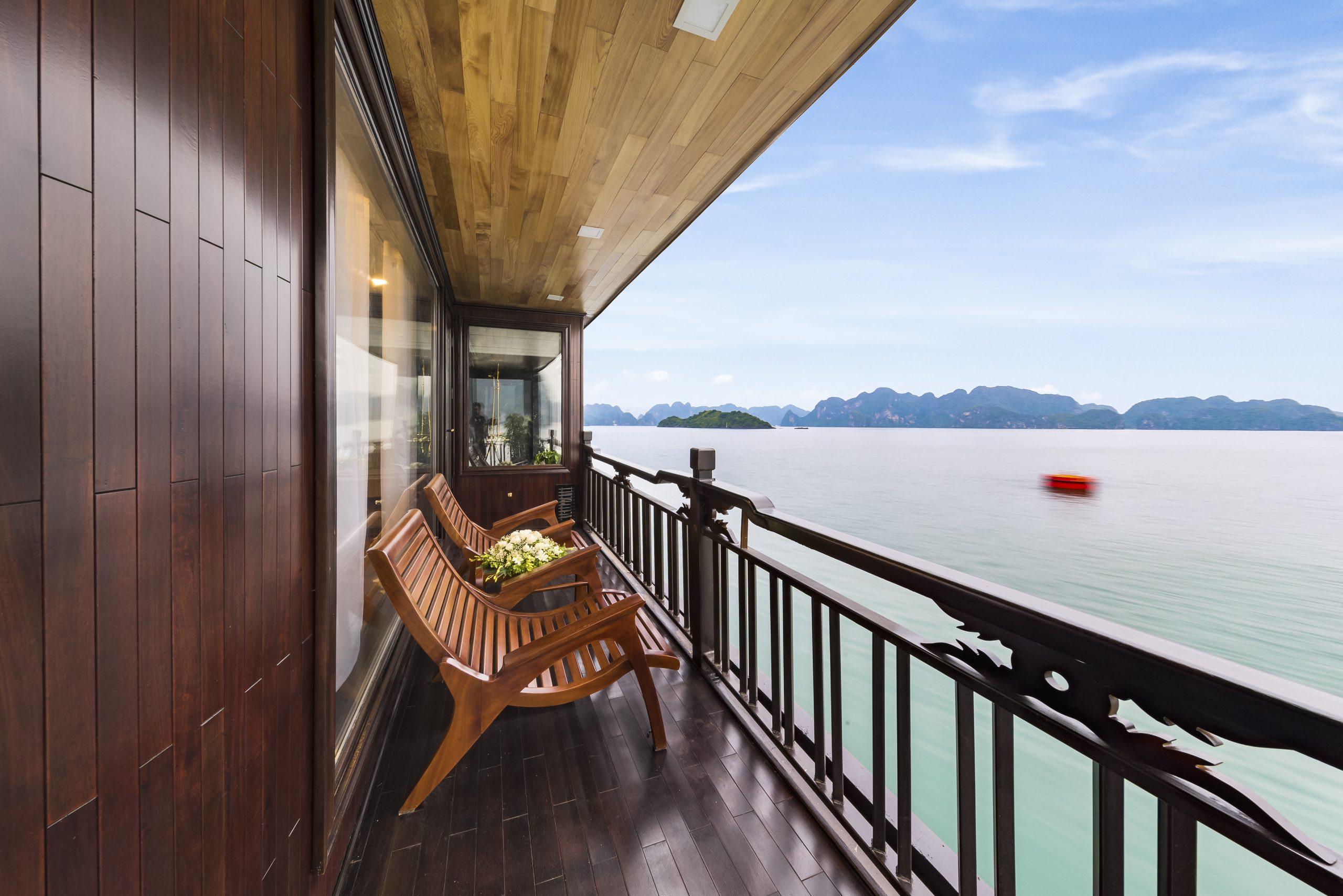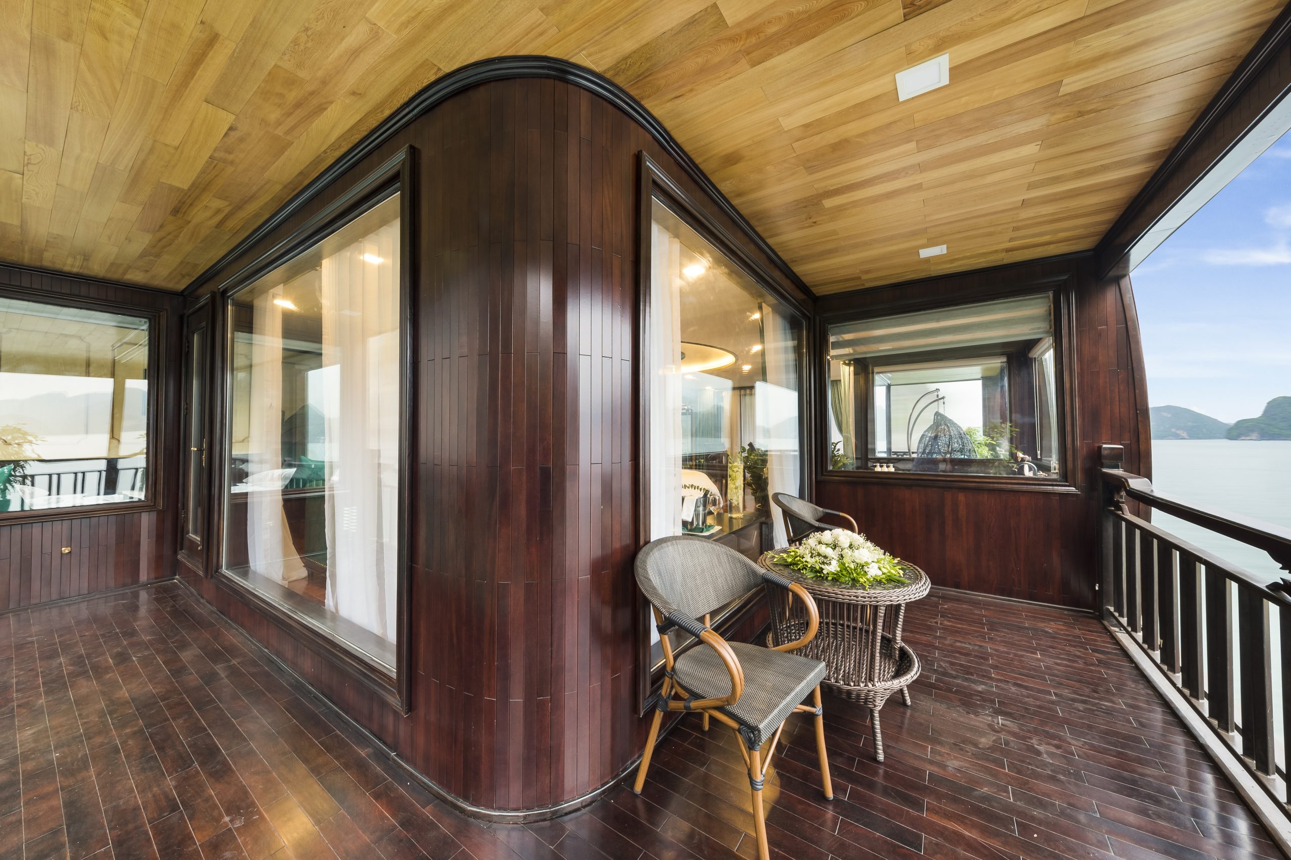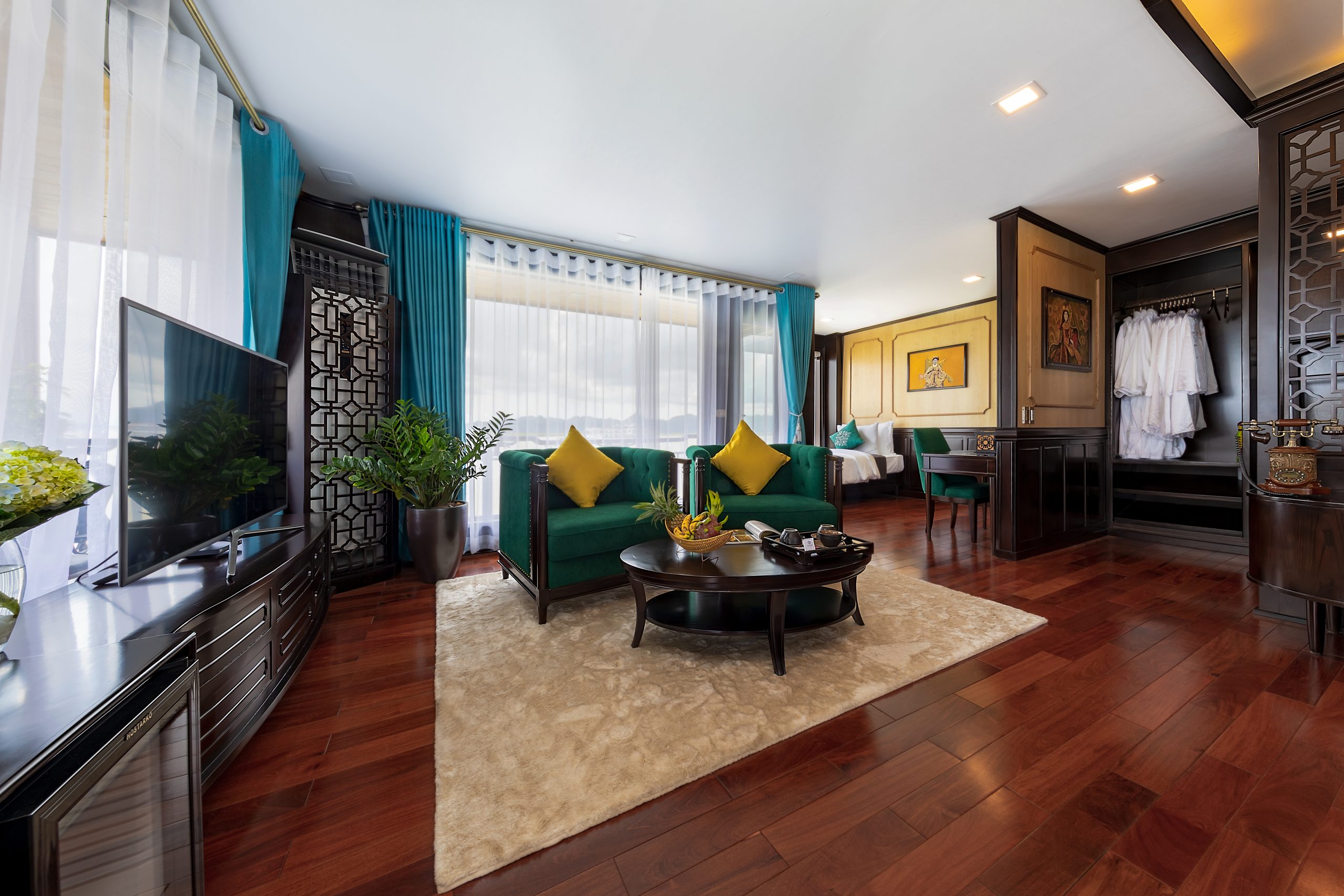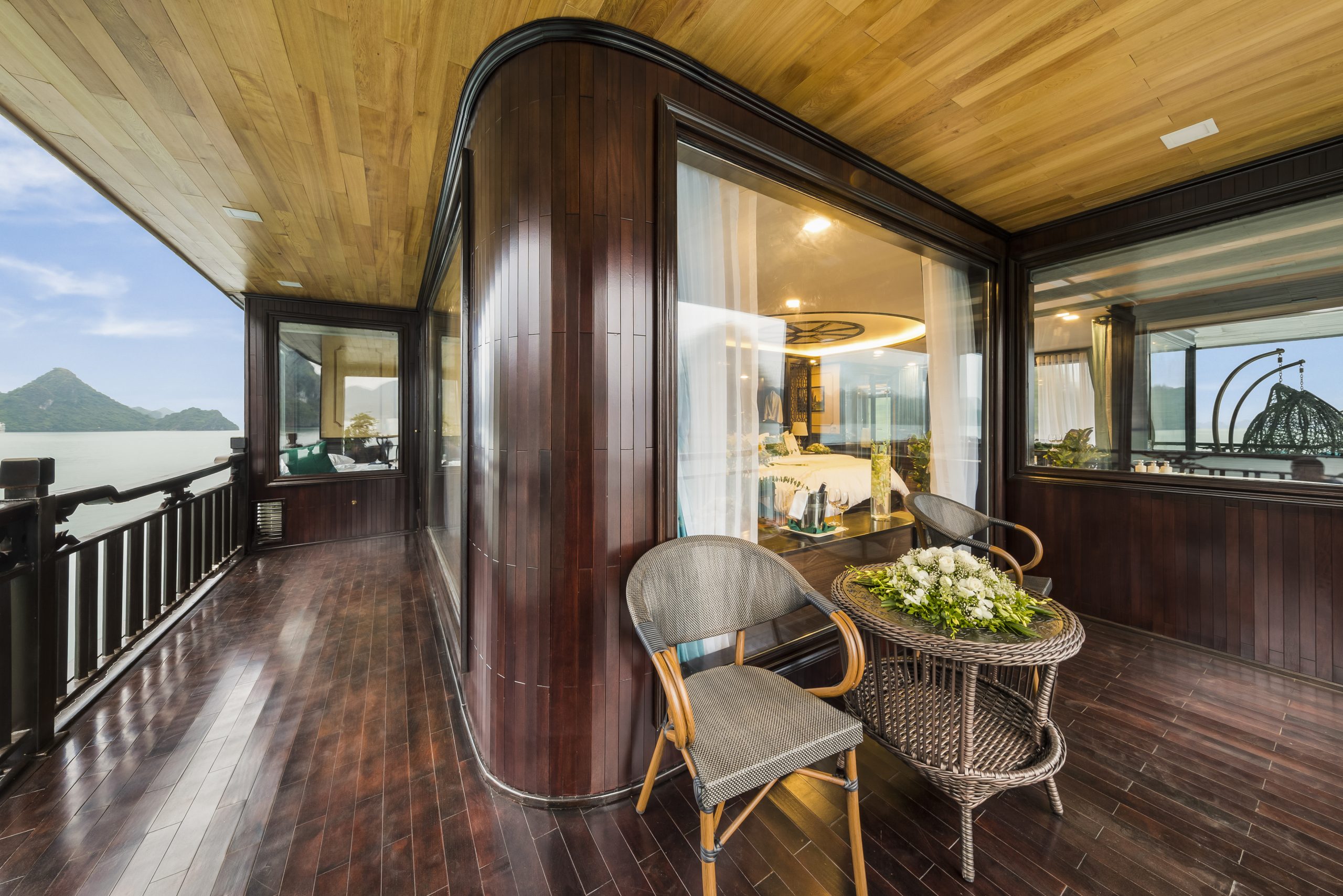 Experience refined elegance aboard La Regina Legend Cruise, where every cabin is thoughtfully designed to embody the essence of “elegant luxury.” Blending Indochine-inspired décor with modern comfort, each suite offers a serene retreat amid the breathtaking beauty of the bay.